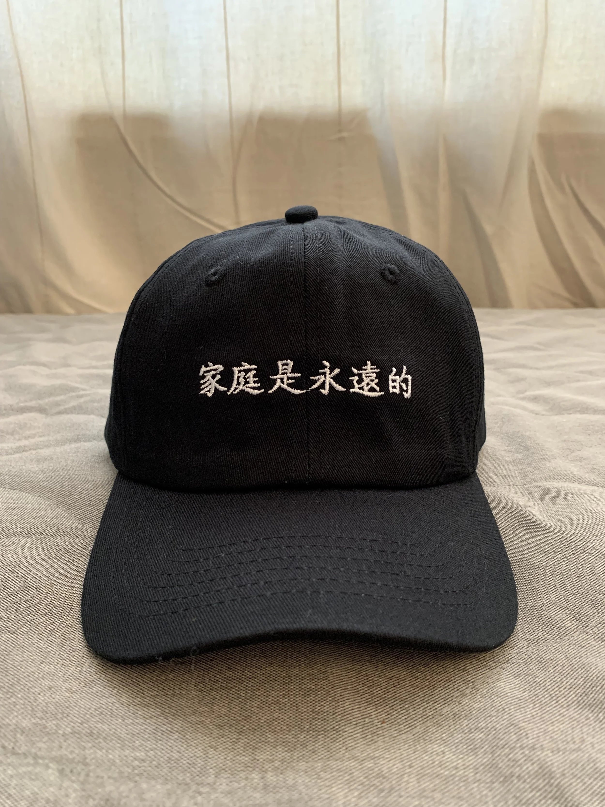 Inventory › "Family is Forever" Baseball Cap -Black Image 1 of 3 Image 2 of 3 Image 3 of 3 "Family is Forever" Baseball Cap -Black CA$20.00 Unisex, 100% cotton baseball cap with an adjustable metal buckle featuring the embroidered phrase “Family is Forever” on the front. One size only. Quantity: Add To Cart Added! Unisex, 100% cotton baseball cap with an adjustable metal buckle featuring the embroidered phrase “Family is Forever” on the front. One size only.